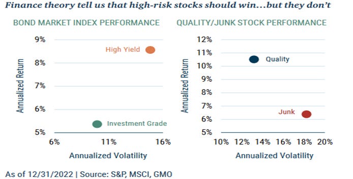 A study by GMO found that quality as a factor defies a general axiom of investments. Seeking higher returns generally demands taking on more risk. Over the last decade, however, quality stocks have outperformed lower-quality stocks by a wide margin despite being less risky (as defined by volatility).
